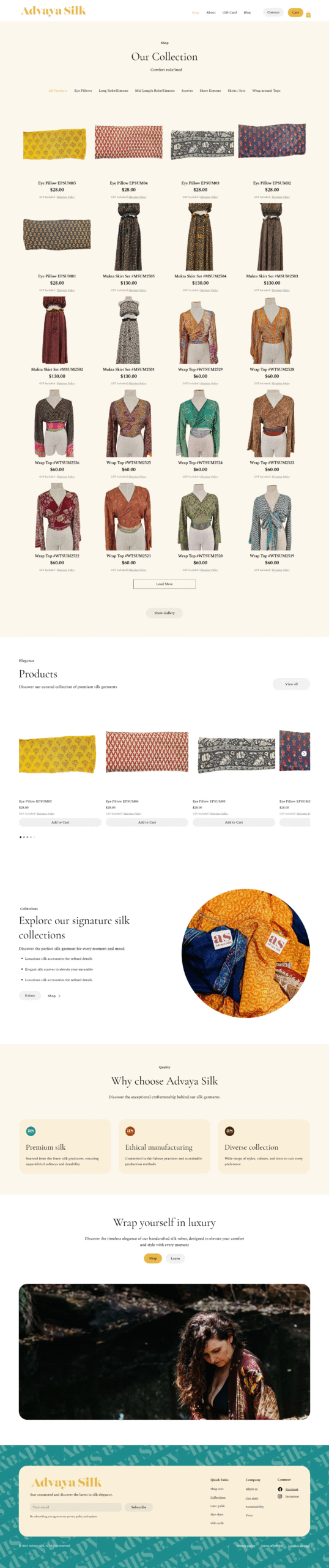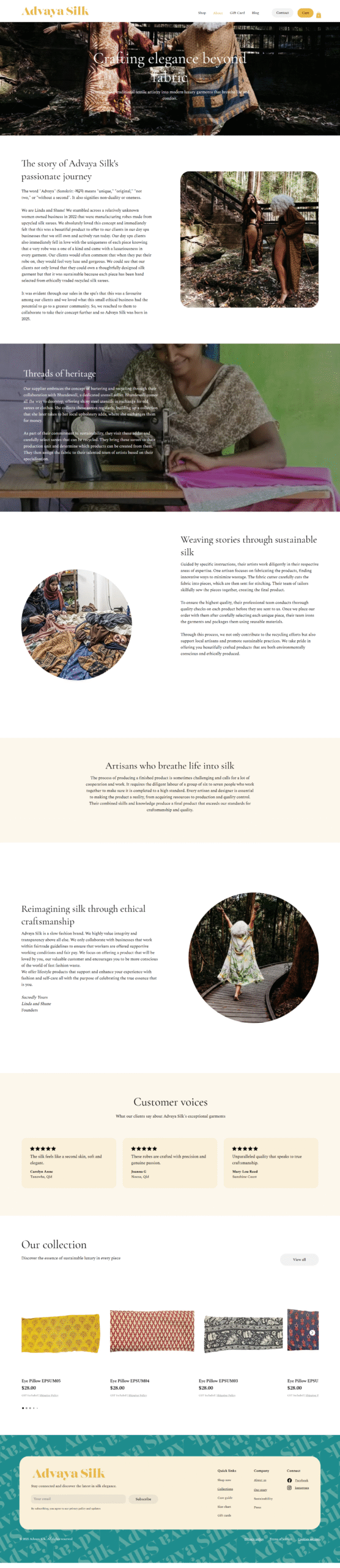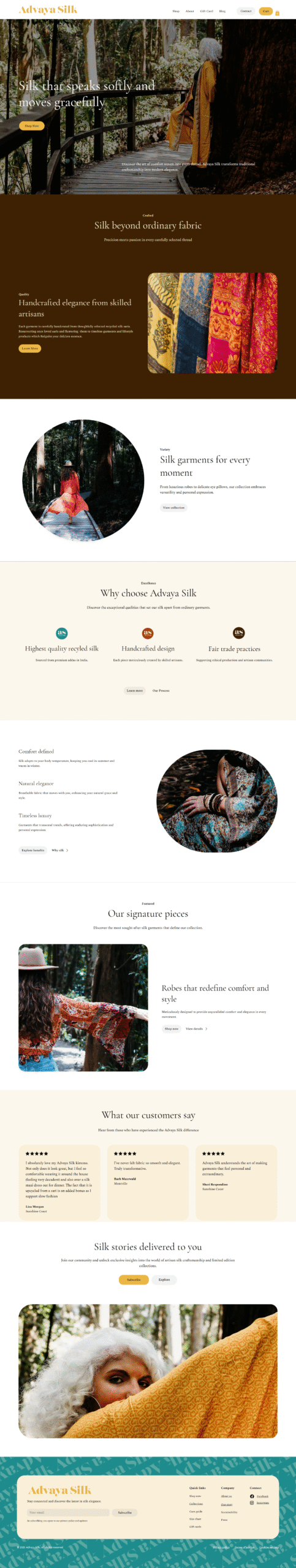 Delivered a luxury-focused digital presence aligned with the Advaya Silk brand.