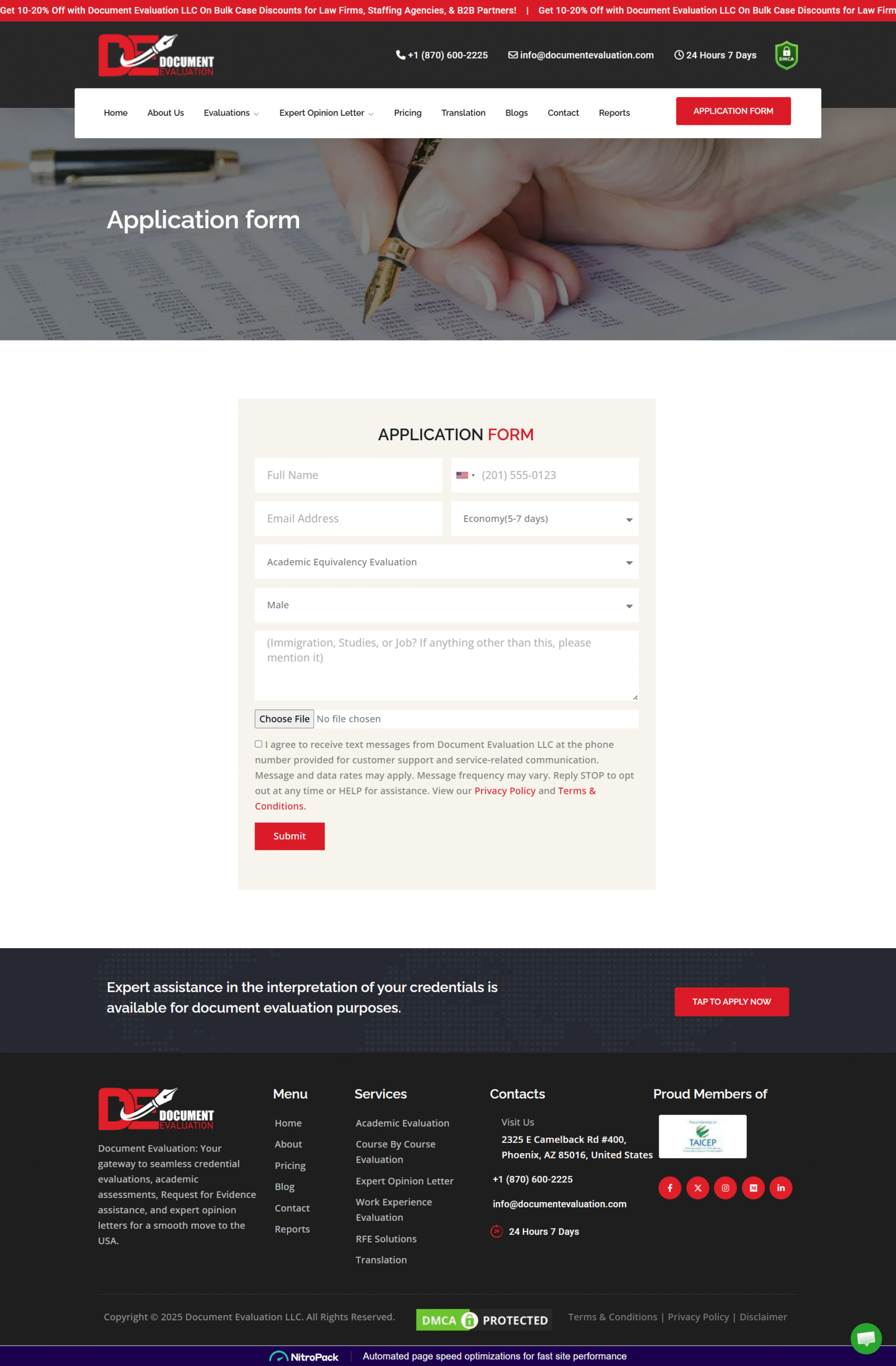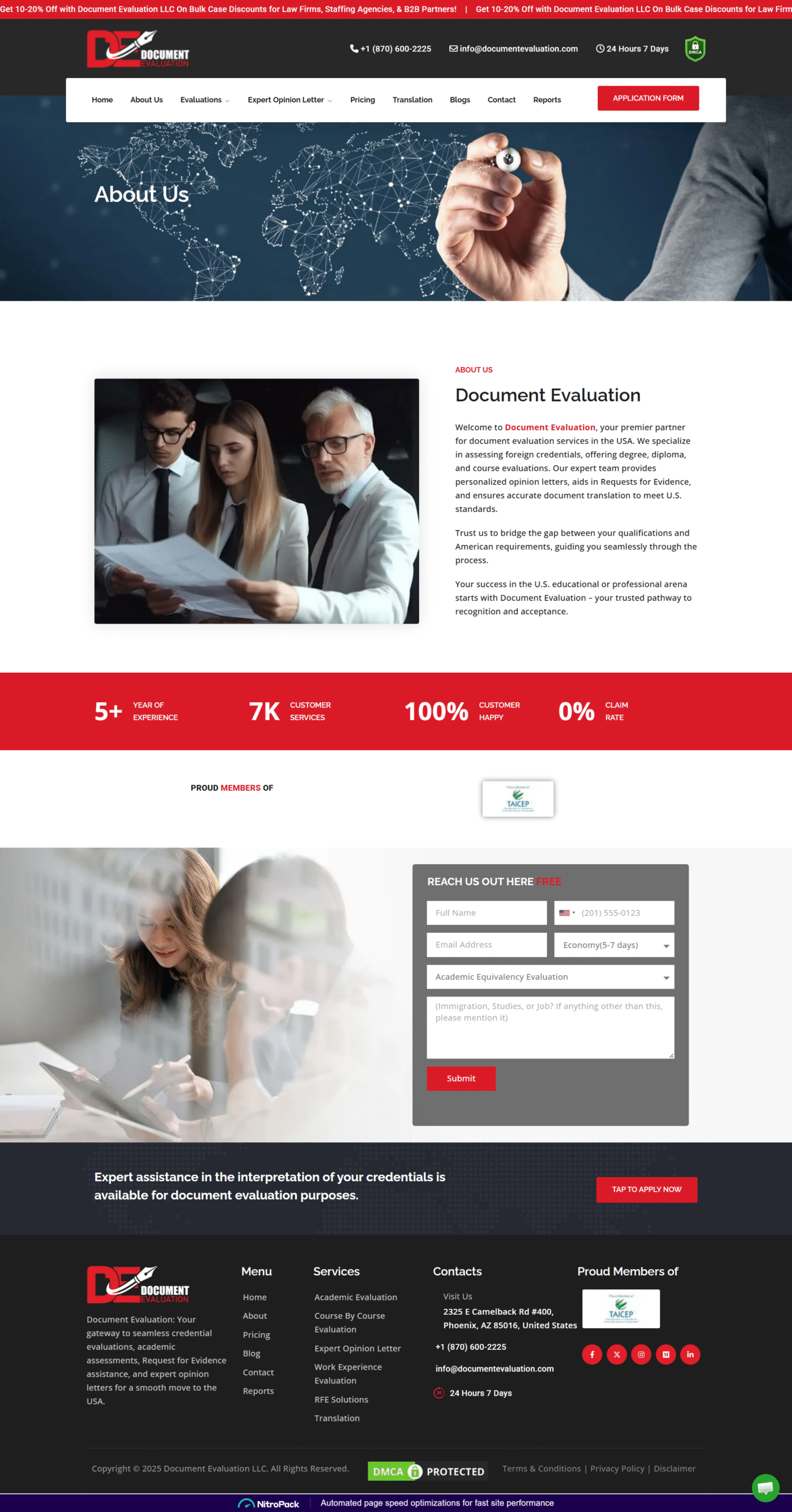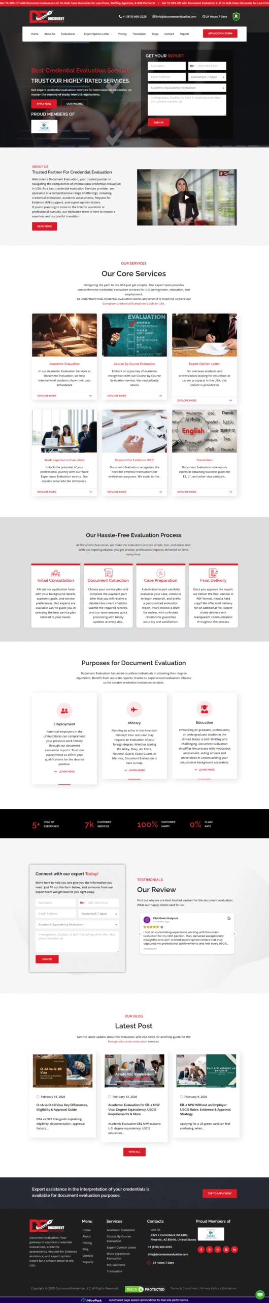 Document Evaluation required a professional, trustworthy, and information-focused website tailored for an international audience seeking document assessment and verification services. The goal was to create a clear, structured, and conversion-oriented platform that reflects credibility while simplifying the inquiry process.