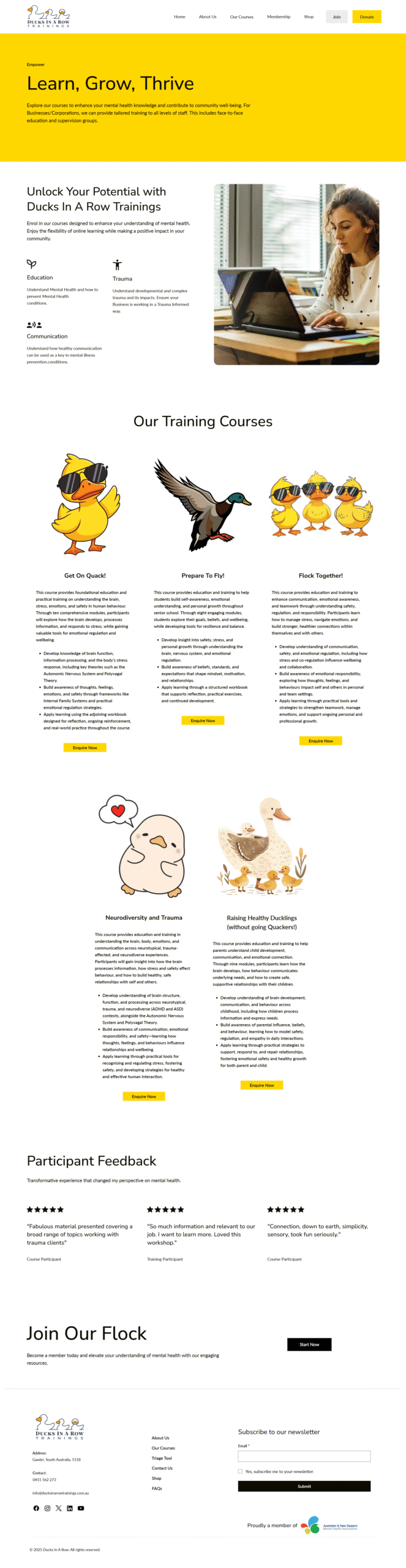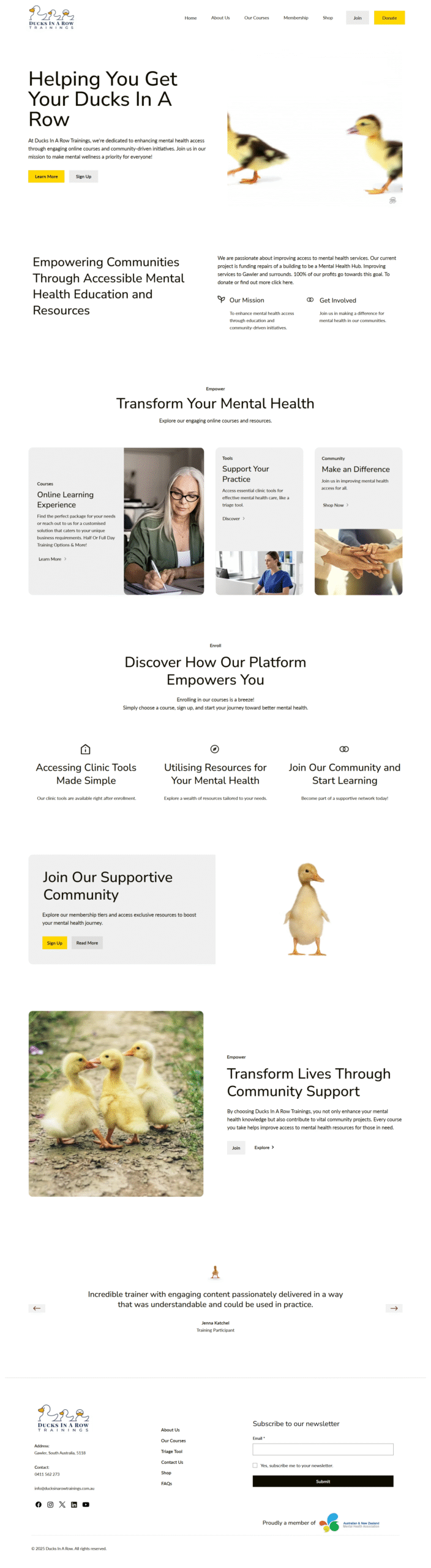 Ducks In A Row required a clean, organized, and visually engaging website that reflects clarity, structure, and professionalism — aligned perfectly with its brand identity. The project involved converting detailed Figma designs into a fully functional Wix website while maintaining layout precision and visual consistency.