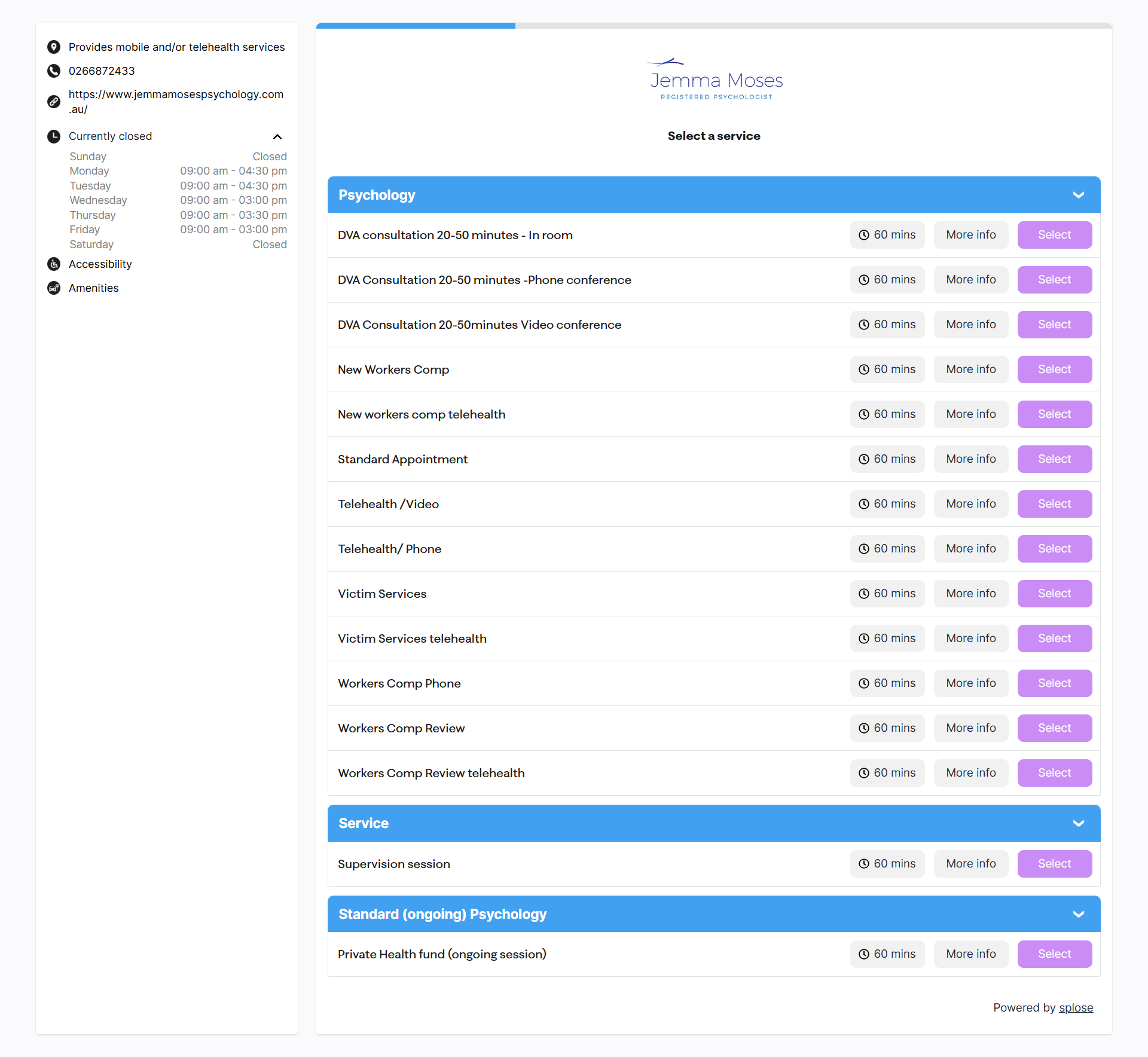 Strategically placed contact and booking sections