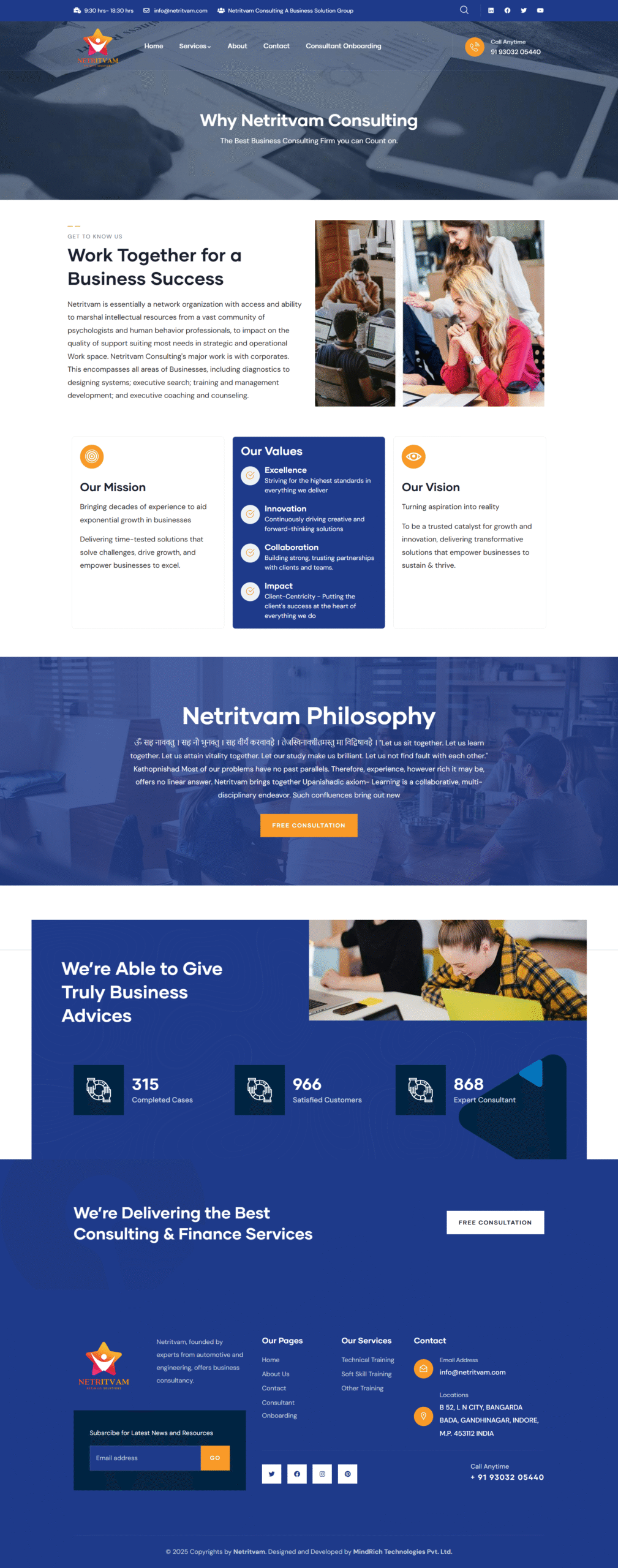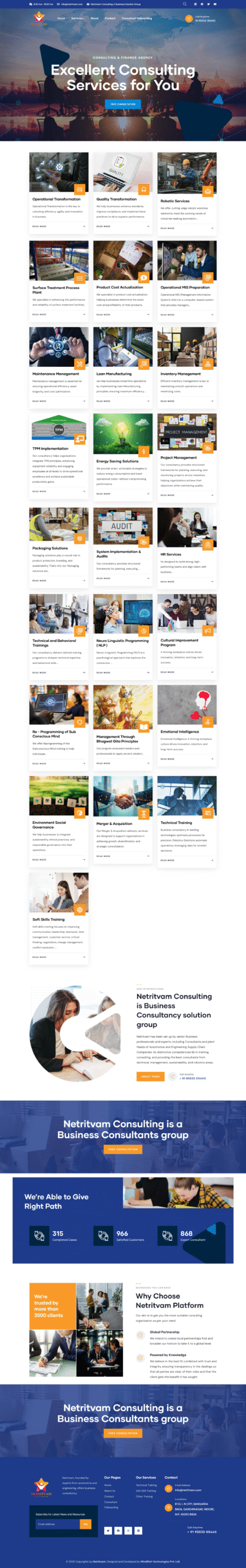 Netritvam required a professional and credibility-driven consultancy website that clearly communicates its expertise, leadership approach, and service offerings. The objective was to build a strong digital presence that positions the brand as a trusted advisory partner while generating qualified consultation inquiries.